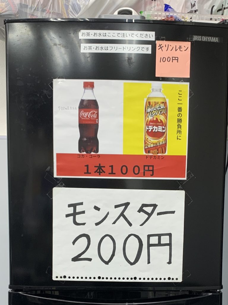 コーラ・ドデカミン・キリンレモン(100円)、モンスター(200円)