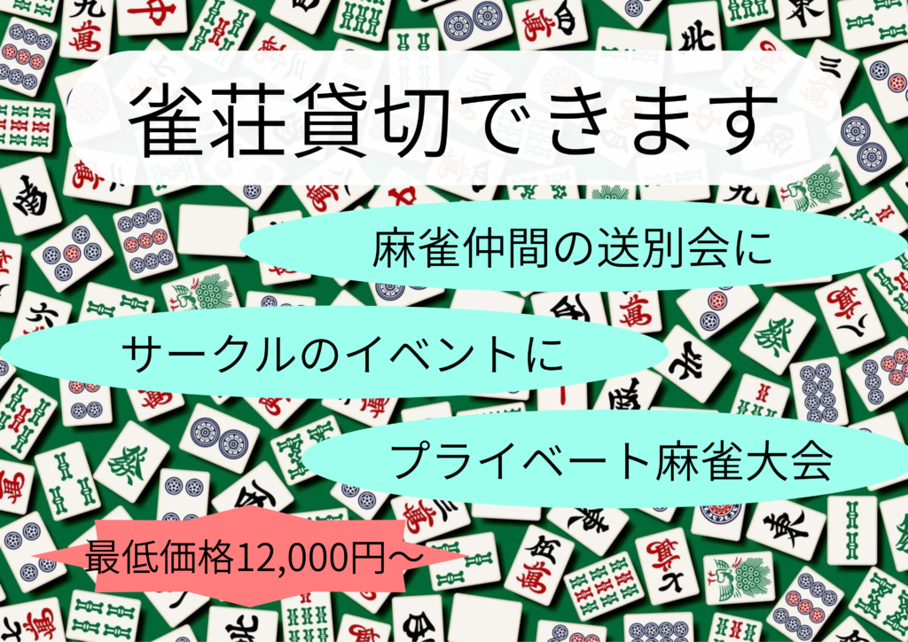 当店では、もっと気軽に麻雀大会を開催してほしい!という思いから日本一安く雀荘の貸切を行っております!