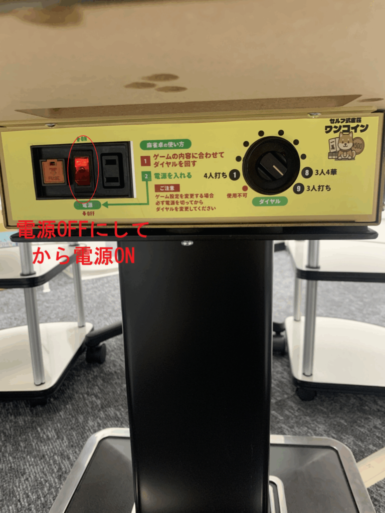 取り除いたら、卓の下の電源OFF,ONをしてください。