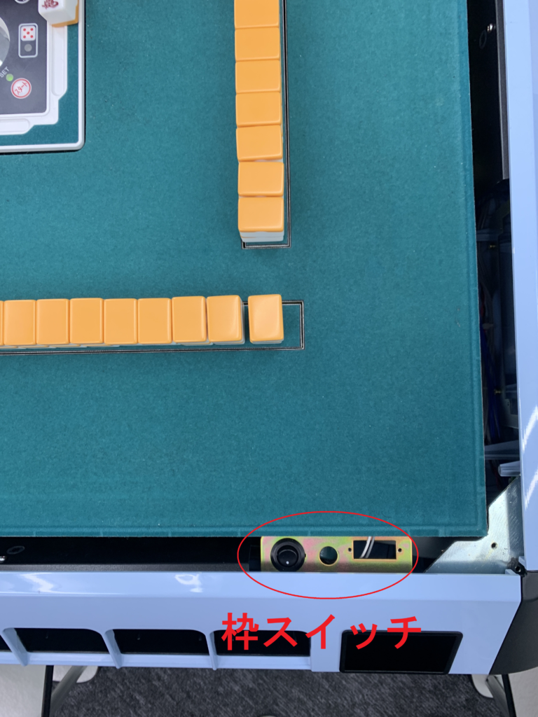 ②卓のスタートボタンを押し、サイコロボックスを上げ、入れ忘れた牌と異なる色の牌(卓上にある牌)を流し入れてください。